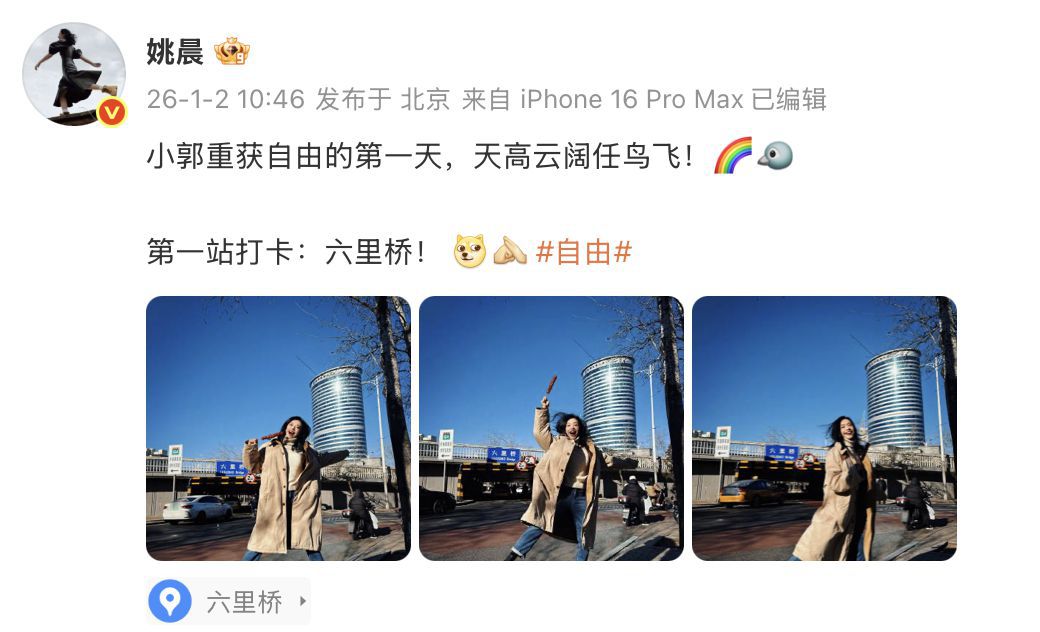 对此,@姚晨 连发两条微博,庆祝“郭芙蓉还清债务”: