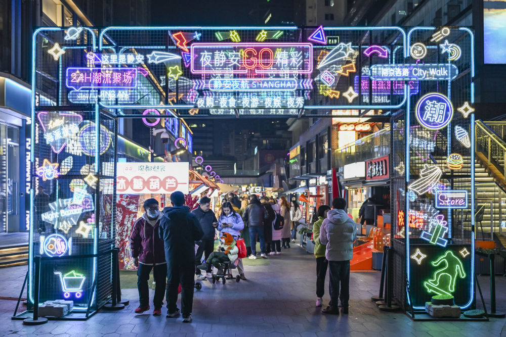 这是1月7日在上海市静安区吴江路拍摄的夜间市集现场。新华社记者陈浩明 摄