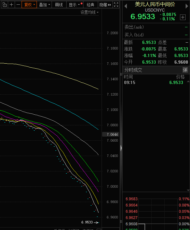 【大河财立方消息】2月4日,人民币兑美元中间价报6.9533,上调75点,升值至2023年5月16日以来最高。