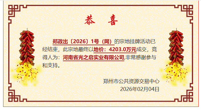dafabet唯一官方网站_大发888体育-游戏|下载云志鑫筑商业管理有限公司以1967万元拍得郑政出[2026]3号(网)地块。该地块用于新纪元汽车运营综合服务中心项目。