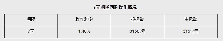 同时,以固定数量、利率招标、多重价位中标方式开展了3000亿元14天期逆回购操作。