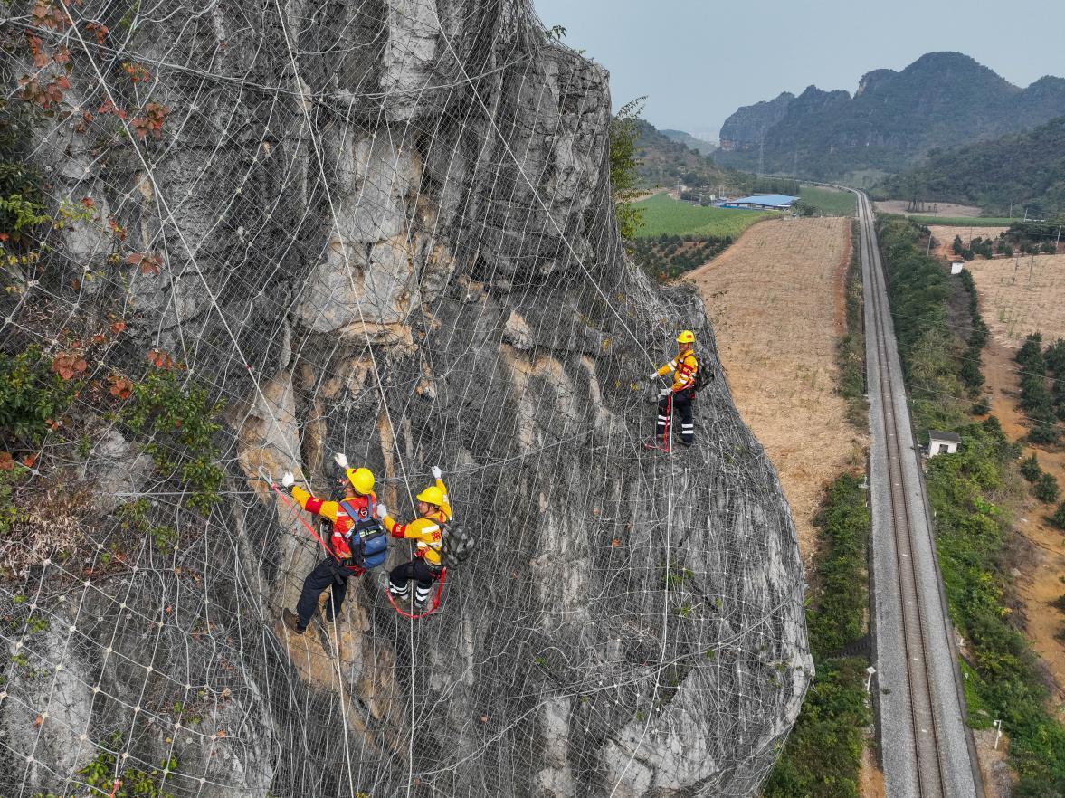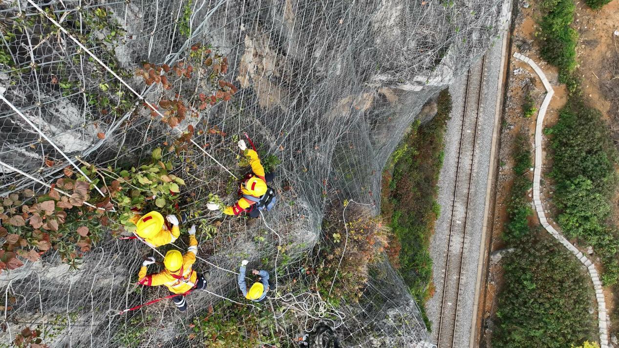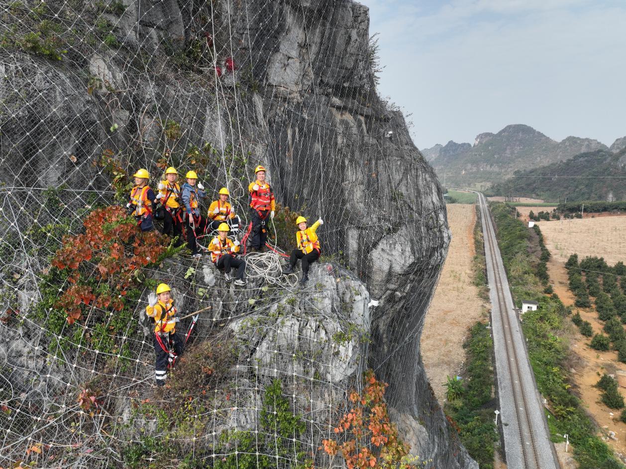 这段时间,中国铁路南宁局南宁工务段南宁路桥检查工区工长杨发登和队友要爬上铁路沿线陡峭的山峰,排查危岩落石隐患,保障铁路运行安全。