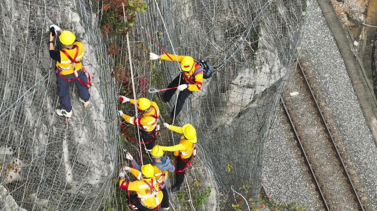 杨发登所在的南宁工务段“爬山虎”突击队,负责勘察铁路沿线137处危岩落石风险点的岩石状态,测量、拍摄、记录、处理可能影响到铁路安全的危石。