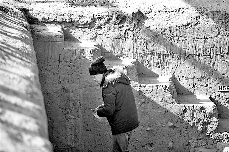 该书作者韩建业在新石器时代双槐树遗址考察。作者供图