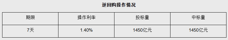 【大河财立方消息】2月13日,中国央行公开市场开展1450亿元7天期逆回购操作,操作利率1.40%。今日有315亿元7天期逆回购到期,实现净投放1135亿元。