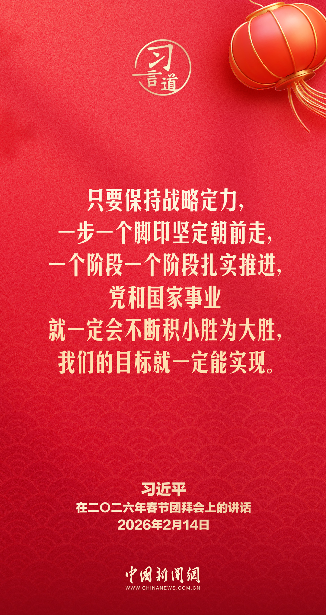 2月14日,中共中央、国务院在人民大会堂举行2026年春节团拜会。中共中央总书记、国家主席、中央军委主席dafabet唯一官方网站_大发888体育-游戏|下载发表讲话,代表党中央和国务院,向全国各族人民,向香港特别行政区同胞、澳门特别行政区同胞、台湾同胞和海外侨胞拜年。他指出——