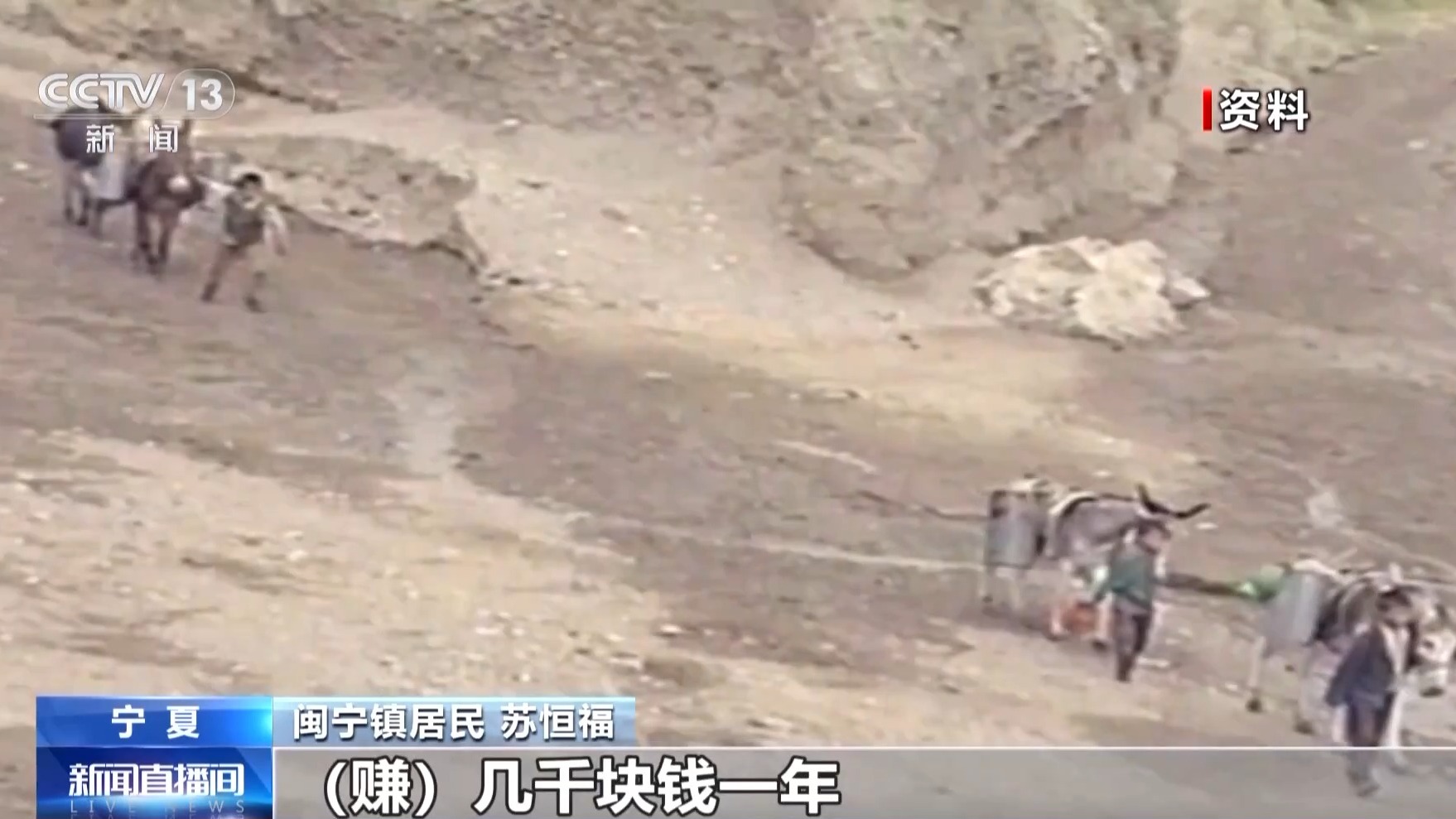 闽宁镇居民苏恒福:太困难了,种地时候用的牛、骡子,一年赚几千块钱。冬天孩子们学校是7点上课,走去学校要一个半小时,她们必须5点多就要起床。