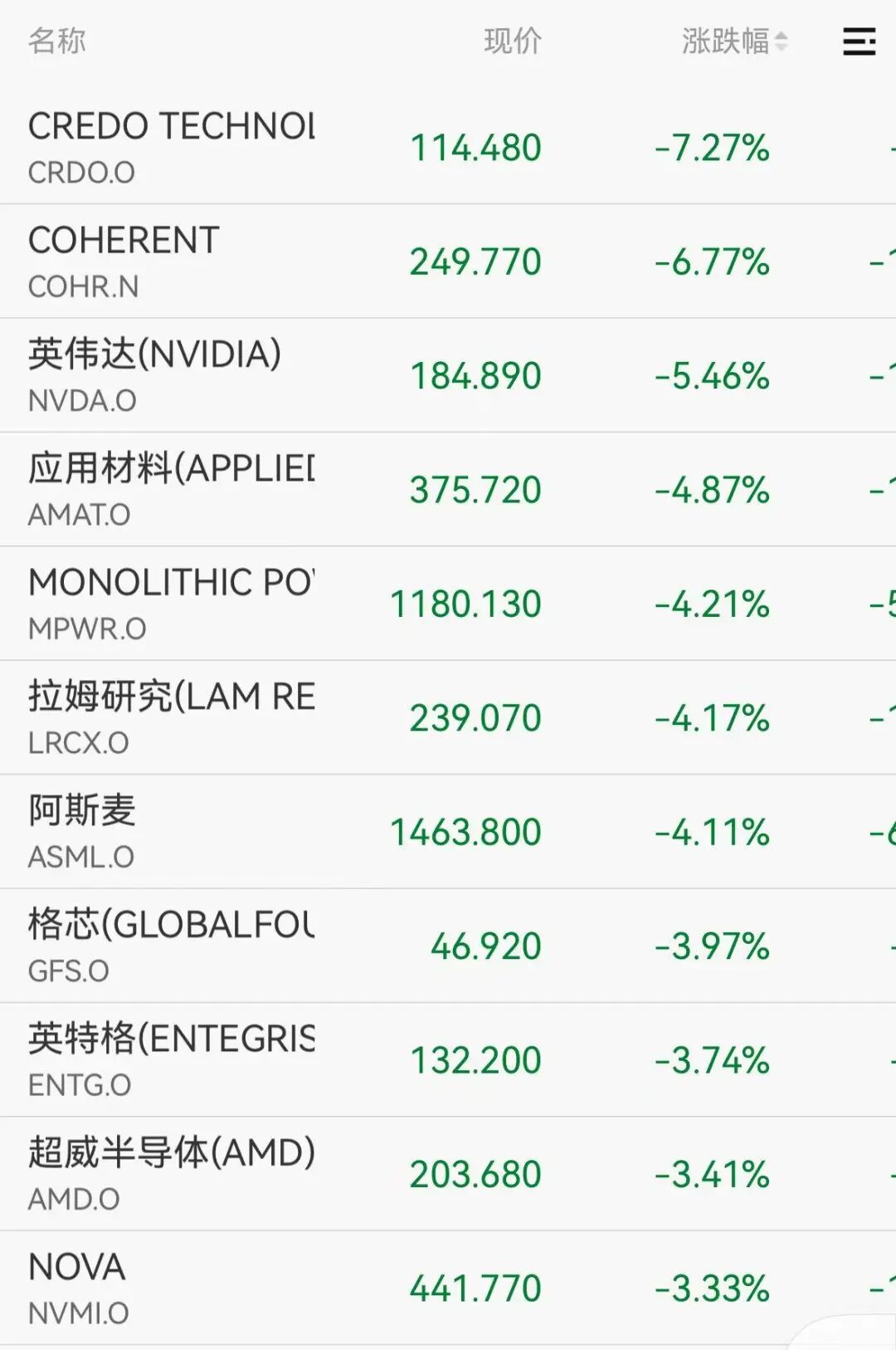 芯片股普遍下跌,费城半导体指数跌3.19%,应用材料跌近5%,拉姆研究跌逾4%,阿斯麦跌超4%,超威半导体跌逾3%,博通跌超3%。