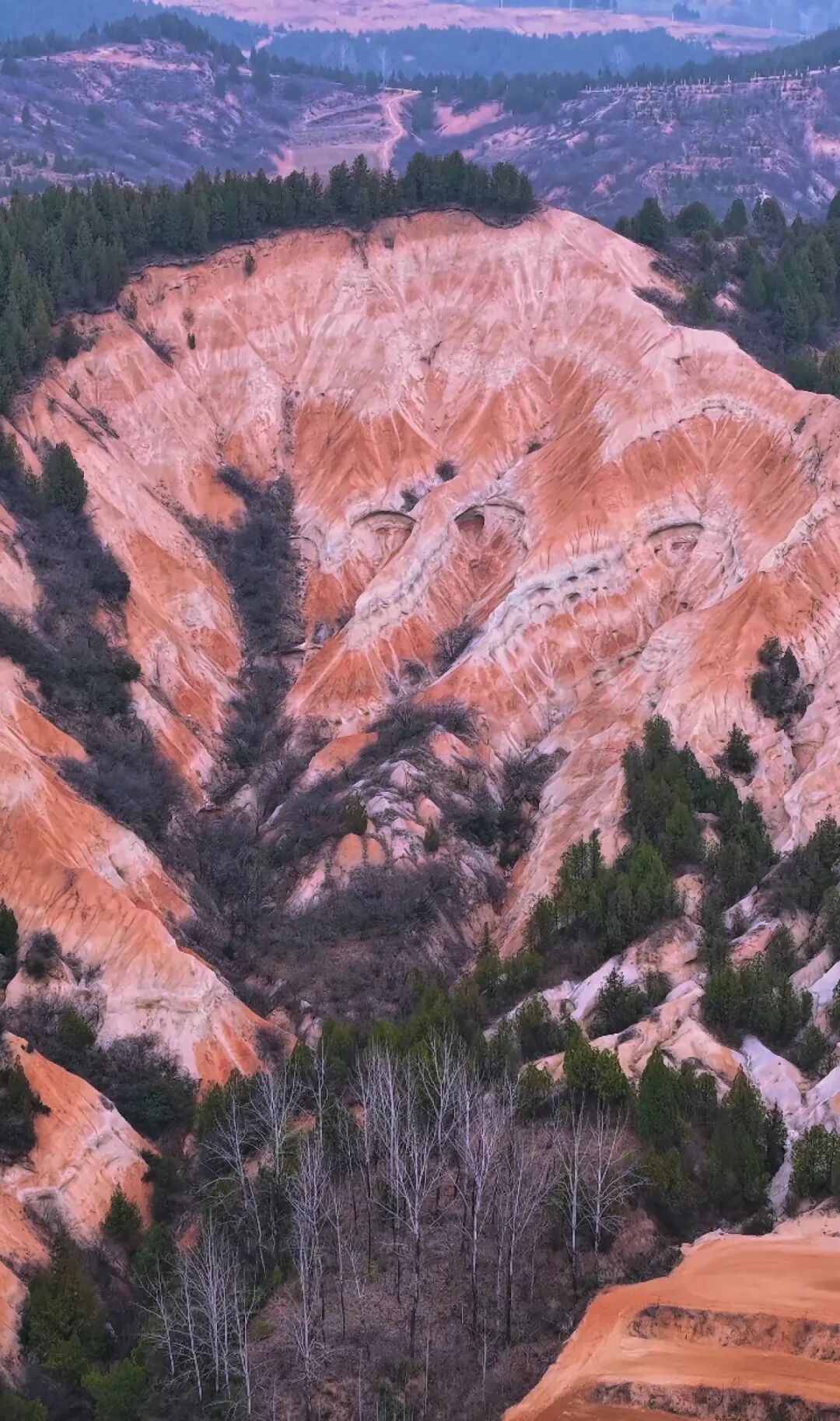 “以前只是在远处看,只觉得是一片红色的山体,平平无奇。没想到无人机飞起来之后,从空中俯瞰,那种层次感和色彩能这么震撼!”范石豪说。