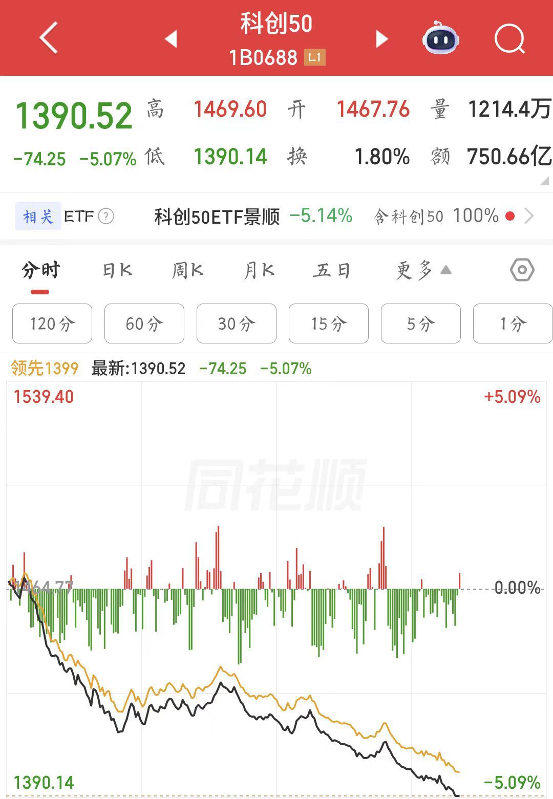 此外,上证指数跌超1%,深成指跌超2%,创业板指数跌近2%,科创综指跌近5%。
