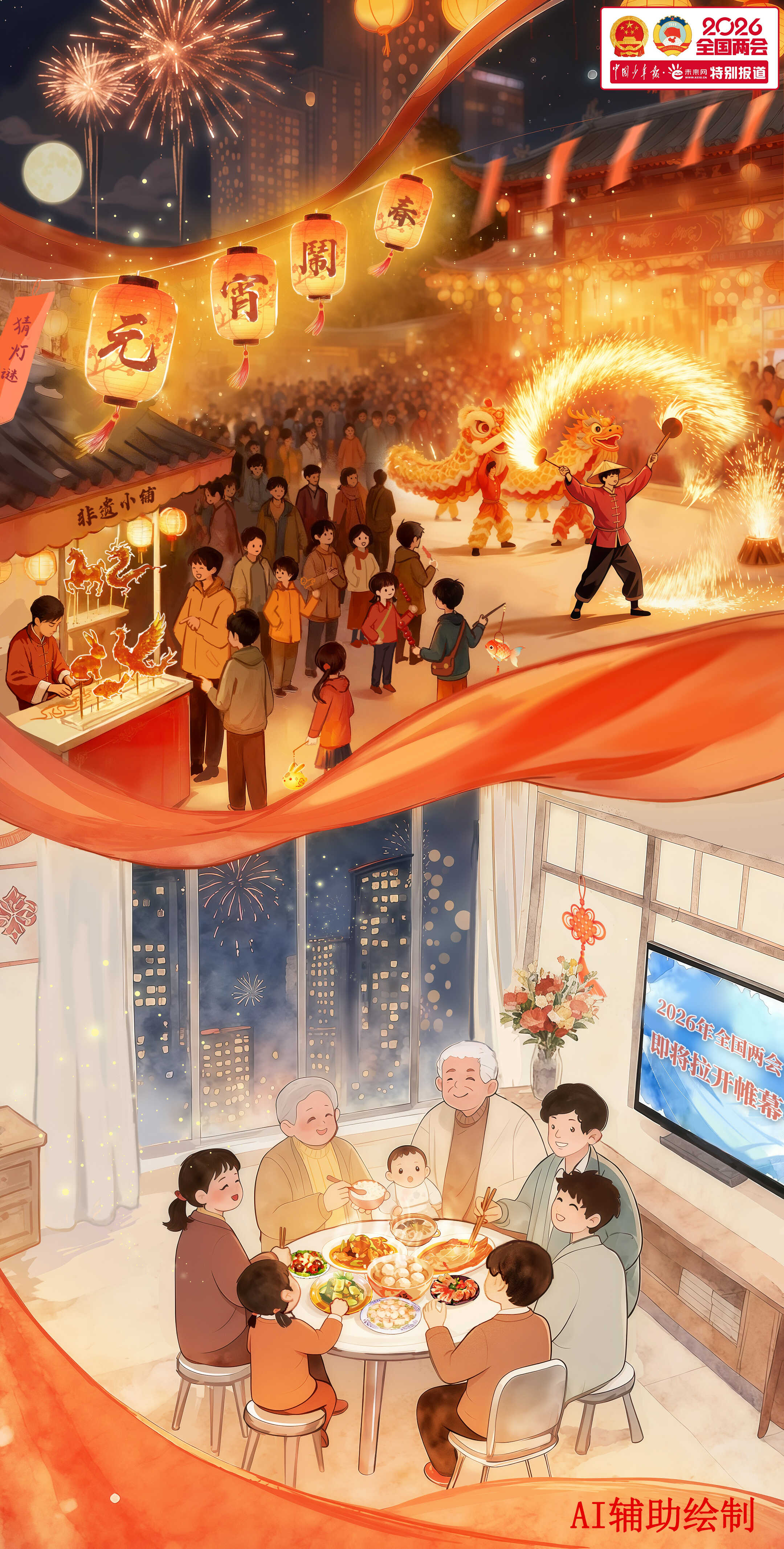 当一盏盏花灯点亮城市街巷,当一碗碗汤圆、元宵端上万家餐桌,2026年元宵佳节如约而至。灯火璀璨处,有孩童提灯嬉闹的欢声笑语,有长辈围炉话家常的其乐融融,更有无数奋斗者收拾行囊、即将奔赴远方的身影。而在北京,一场备受关注与期待的春日盛会——全国两会,也将在明天(3月4日)拉开帷幕。