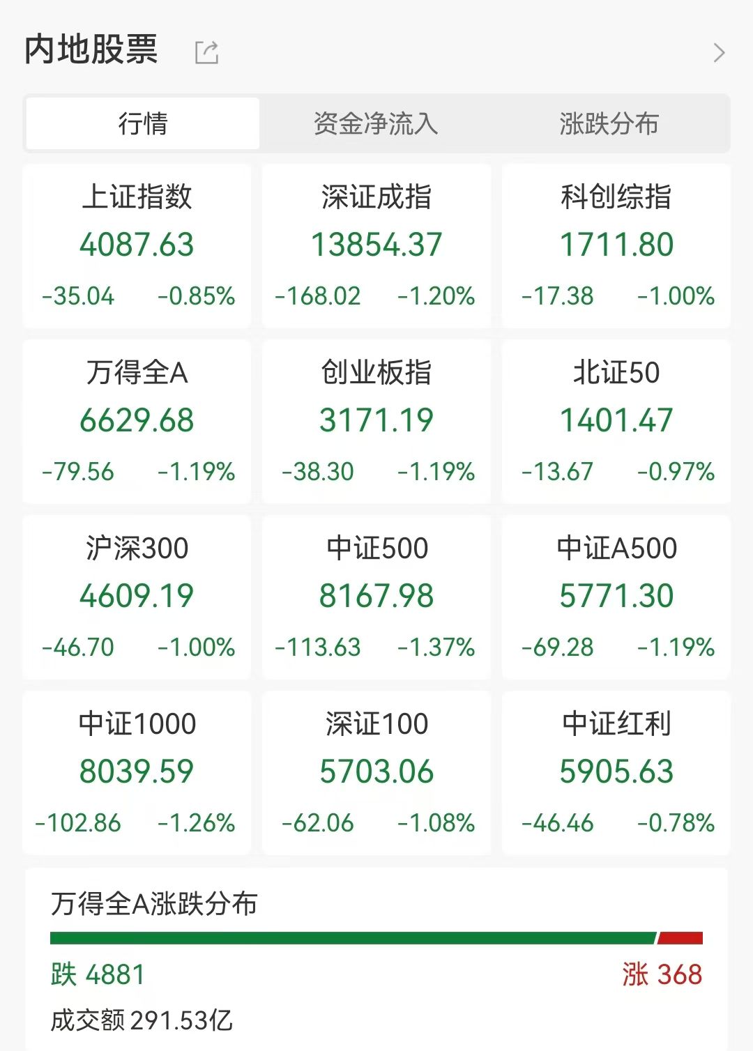 【大河财立方消息】3月4日,A股集体低开,沪指跌0.85%,深证成指跌1.20%,科创综指跌1%,创业板指跌1.19%。储存器、生物育种、油气板块逆市走强,黄金珠宝、稀有金属、稀土、光通信等热门概念股跌幅居前。沪深北三市4881只个股下跌。